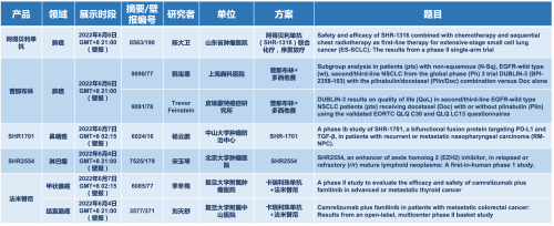 2022 ASCO年会另有5款凯时官网医药上市前抗肿瘤创新药的相关研究被接收为壁报,包括SHR-1316、普那布林、法米替尼、SHR-1701和SHR2554,他们的单药或联合方案相关7项研究被接收为壁报,覆盖肺癌、鼻咽癌、淋巴瘤、甲状腺癌和结直肠癌等领域。