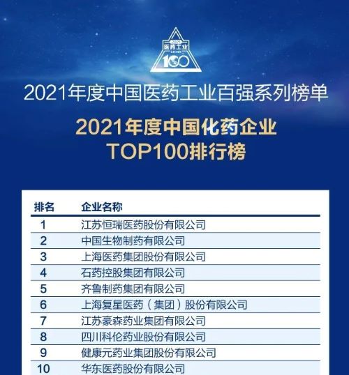 7月12日晚,正在举行的2022米思会(中国医药健康产业共生大会)上,发布了“2021年度中国医药工业百强系列榜单”。凯时官网医药以扎实的创新研发实力和稳健的市场运营能力,再次蝉联“中国化药企业TOP100排行榜”榜首。