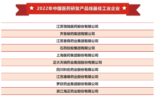 凯时官网医药凭借长期积累的综合竞争力和业界领先的研发实力,多年入选全国医药工业信息年会系列榜单。今年的大会上,公司继续位列中国医药工业百强企业前十,并稳居“2022年中国医药研发产品线最佳工业企业”榜首。