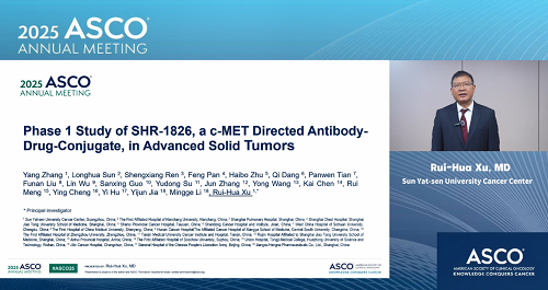 2025年美国临床肿瘤学会(ASCO)年会于5月30日至6月3日在美国芝加哥举行。本次大会,由中山大学肿瘤防治中心徐瑞华教授牵头、凯时官网自主研发的靶向细胞间质上皮转换因子(c-MET)ADC药物SHR-1826的一项I期临床研究入选临床科学研讨会,并由徐瑞华教授口头报告了该研究结果。该研究由43家国内中心共同完成。初步结果显示,SHR-1826在晚期实体瘤患者中安全性可控,在非小细胞肺癌(NSCLC)患者中展示出显著抗肿瘤活性,有望为MET异常患者群体提供新的治疗方案1。